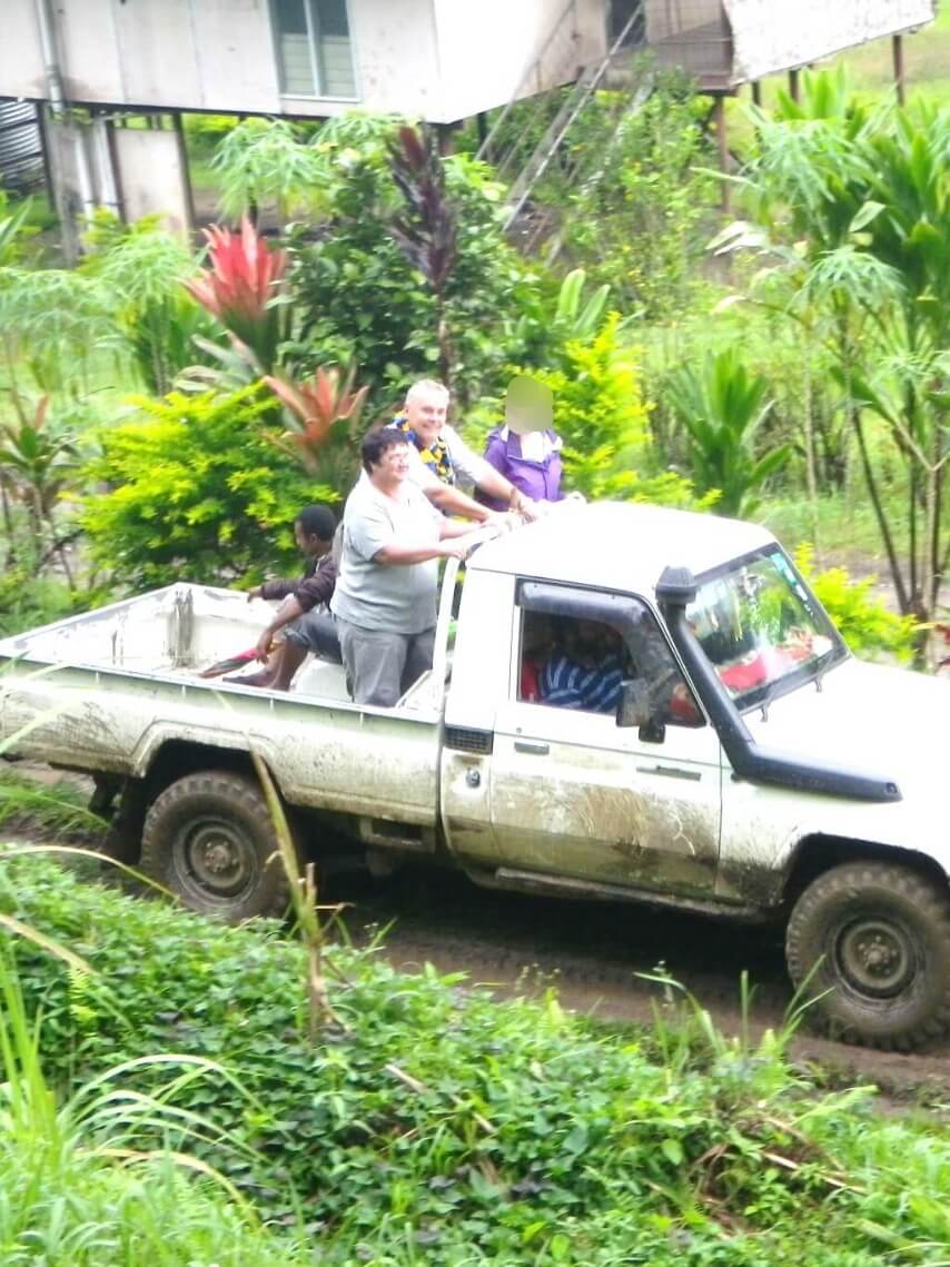 Die Rückfahrt zum Biabi Strand traten wir wieder mit zwei Pickups an. Alle Menschen, die uns sahen, winkten und freuten sich wie jedes Mal. Eine Frau rief sogar „good pela young pela marries“ was so viel bedeutet wie „die hübschen jungen Mädchen“. Ein junger Mann lief uns sogar mit seiner Ukulele hinterher und spielte uns ein Lied vor.