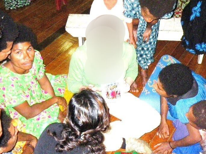 Dort empfing uns Simeon Moses mit Blumenketten am Flughafen. Am nächsten Tag ging es zum Schiff und wir erlebten eine sehr unangenehme vierstündige Überfahrt nach Finschhafen, bei der wir alle seekrank wurden. Von dort aus wurden wir von Kedabing Lukas mit einem offenen Laster nach Logaweng gefahren.Logaweng ist eine Ausbildungsstätte für Pfarrer, in der auch Fred Yawomar unterrichtet. Dieser war für ein paar Jahre in Hohenstadt als Pfarrer.