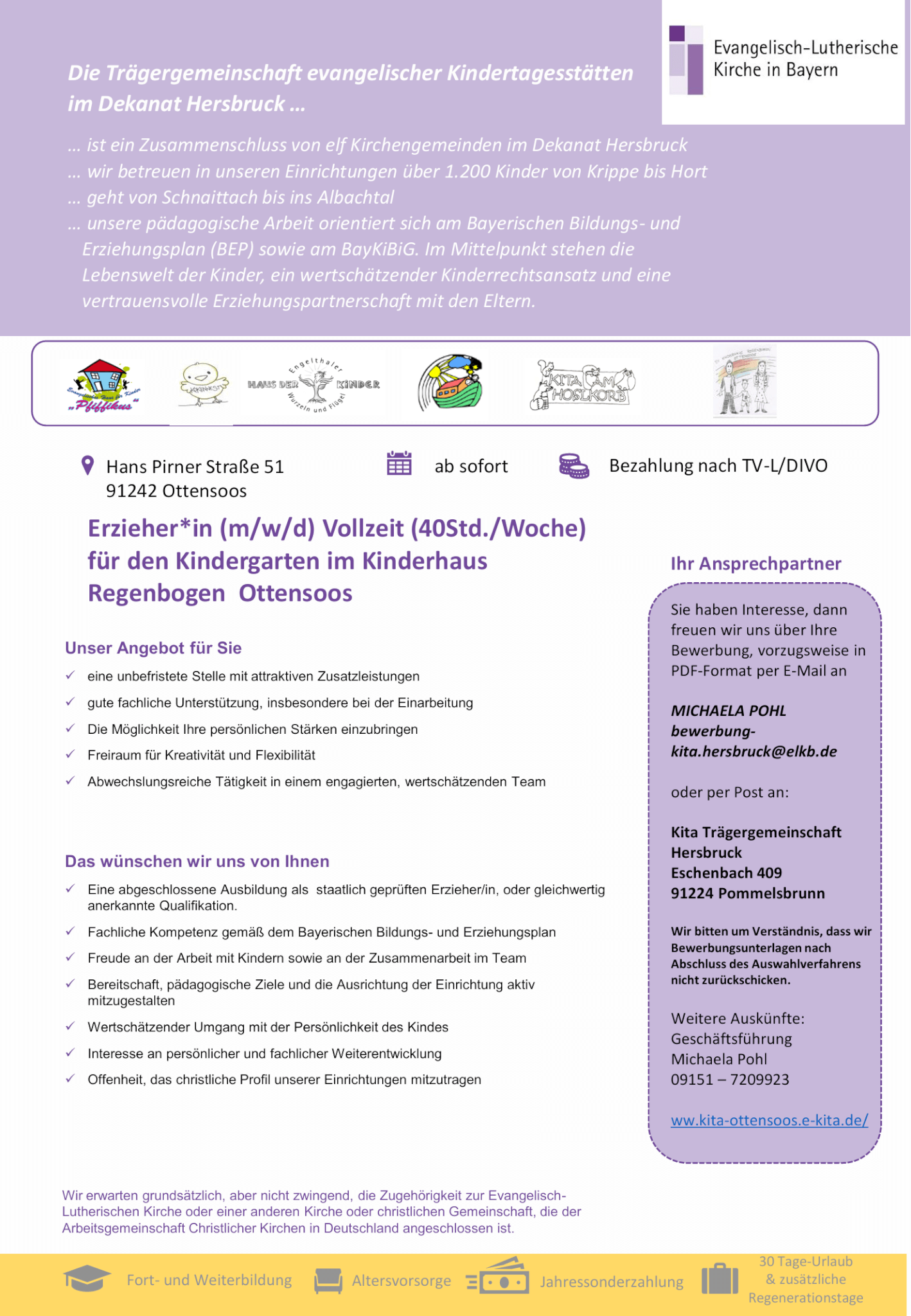 Erzieher*in (m/w/d) für das Ev. Kinderhaus Ottensoos gesucht